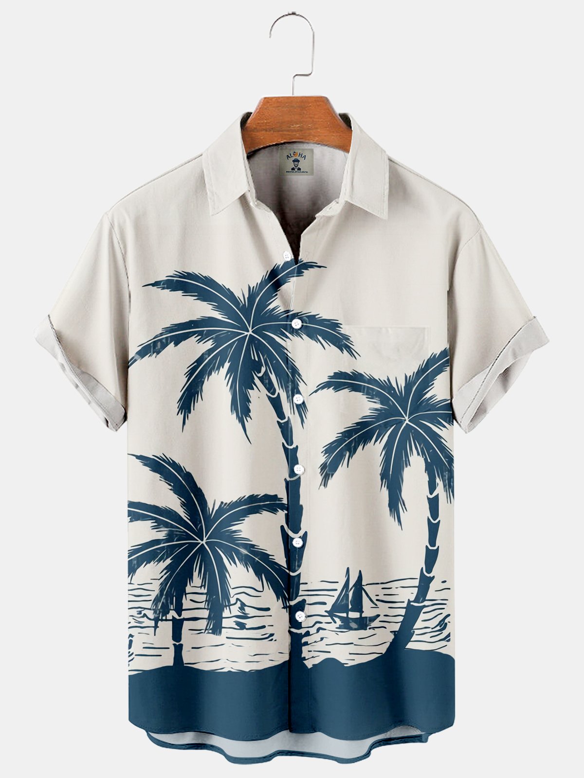 Men's Casual Hawaiian Palm Beach Print Short Sleeve Shirt