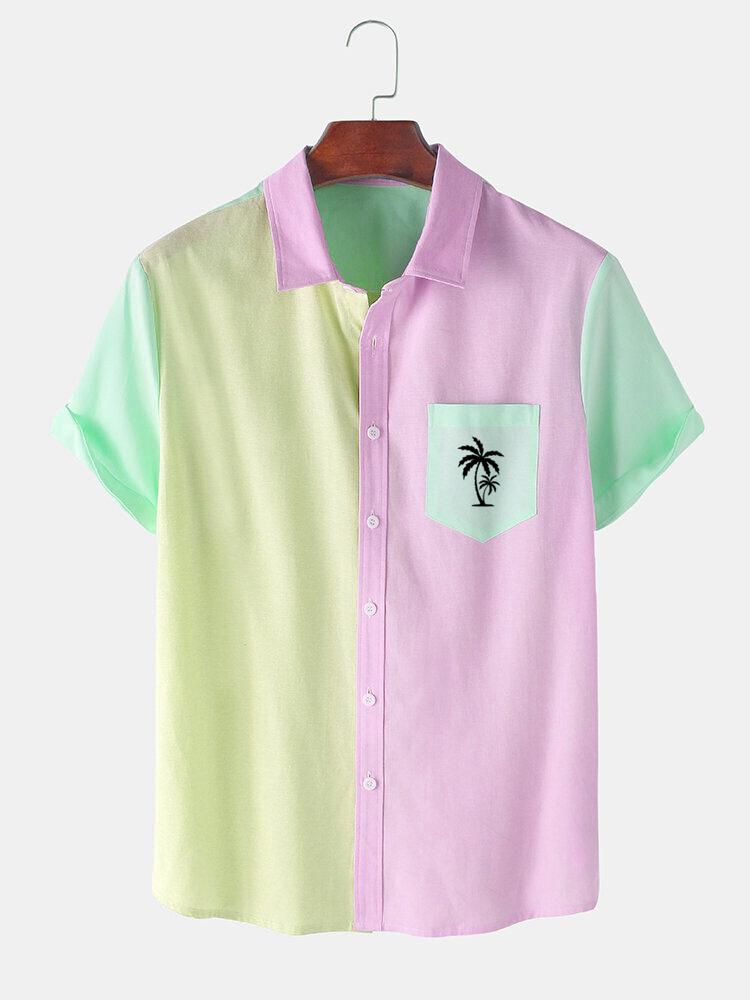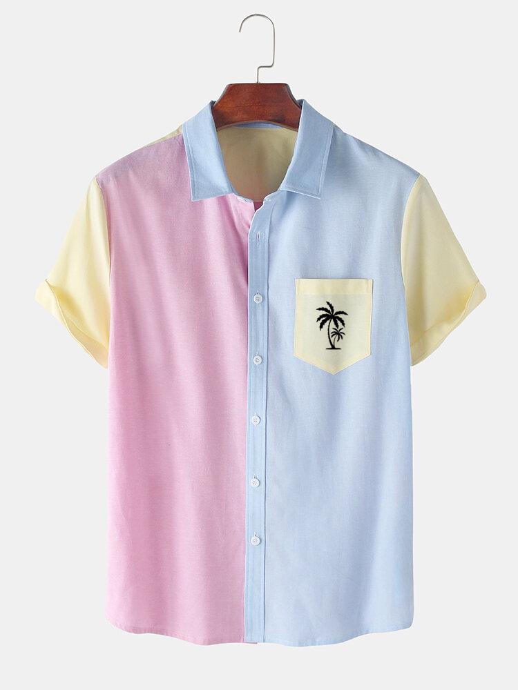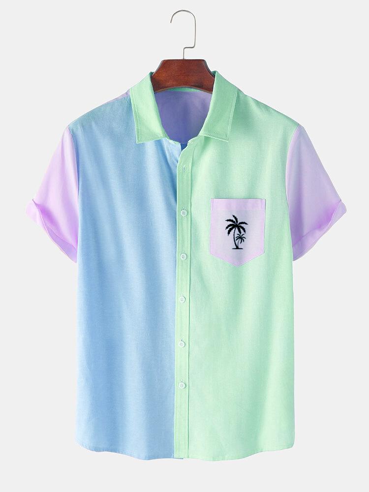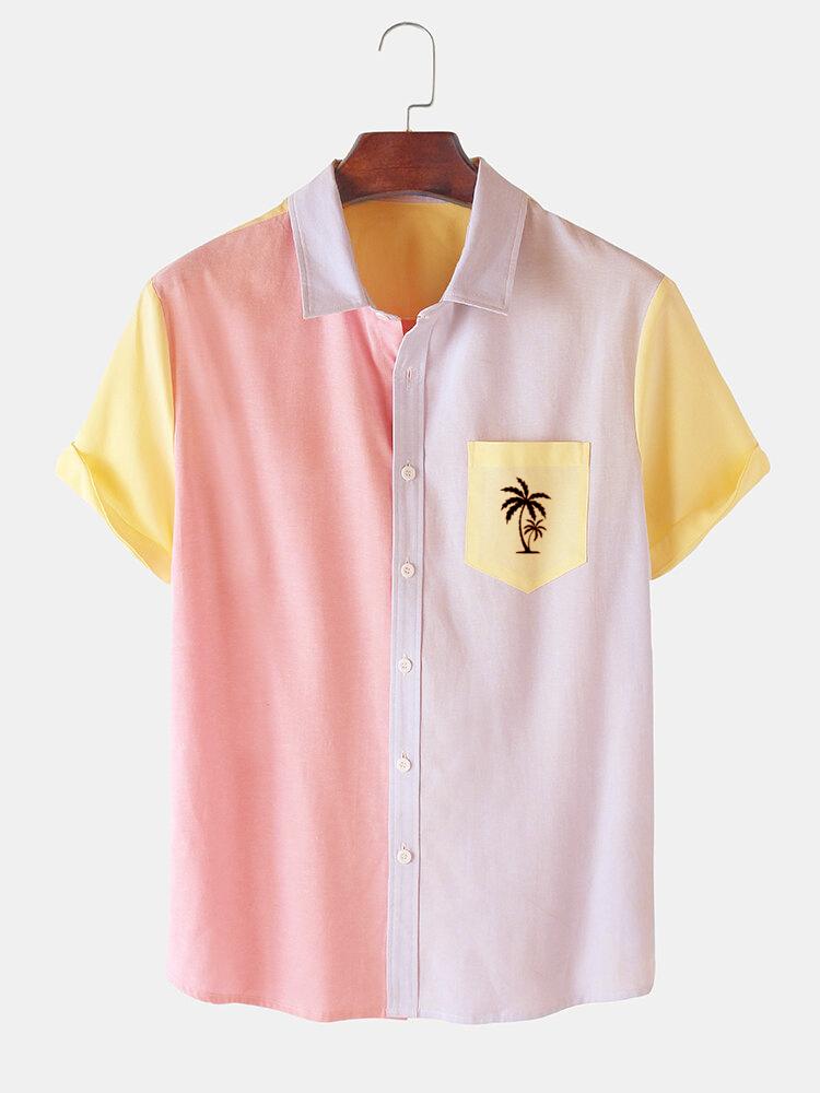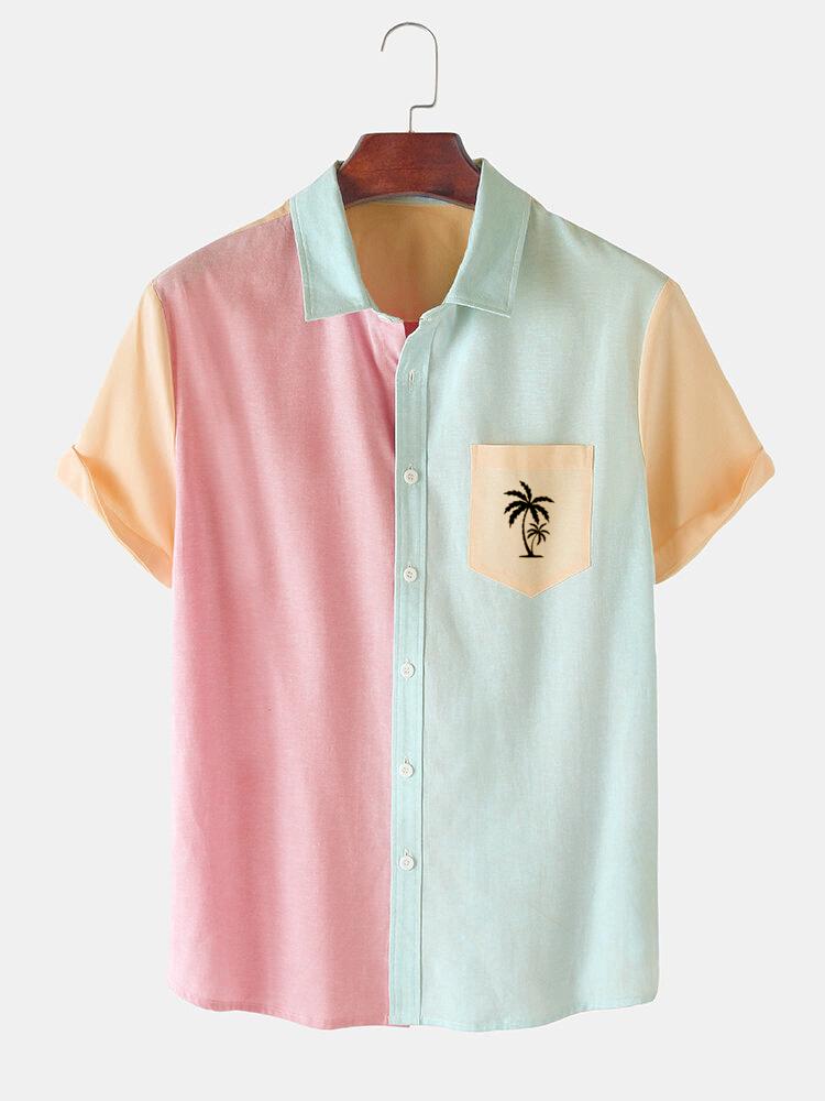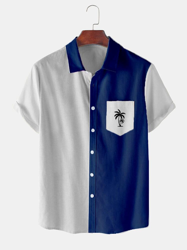 Men's Casual Patchwork Contrast Coconut Short Sleeve Shirt