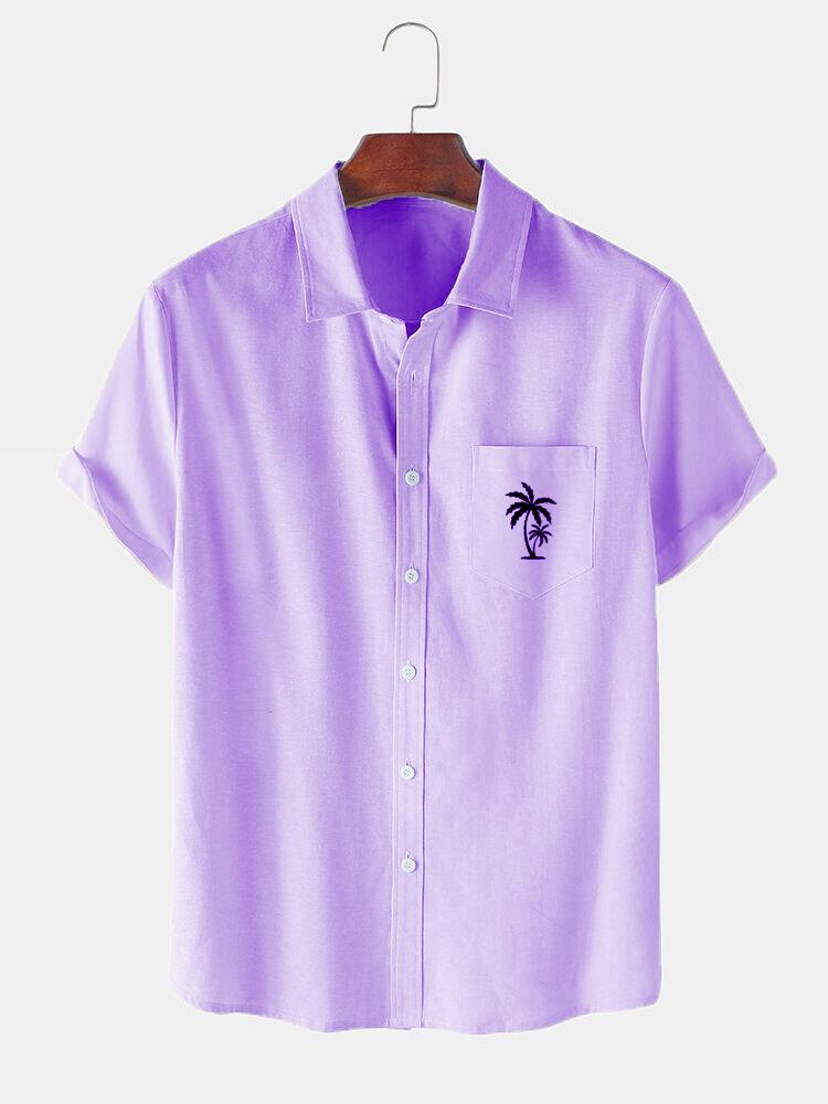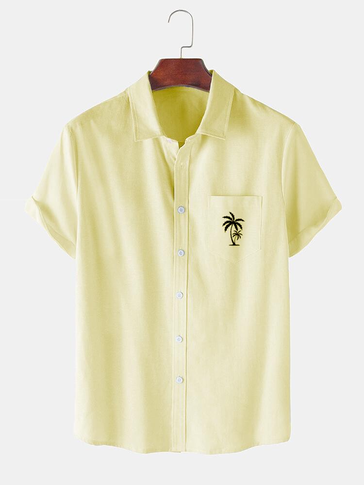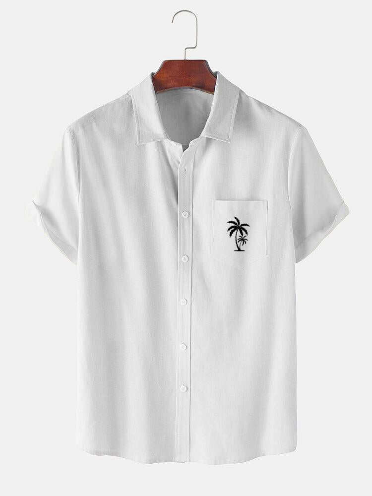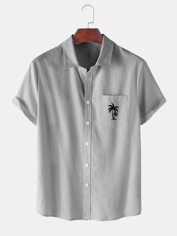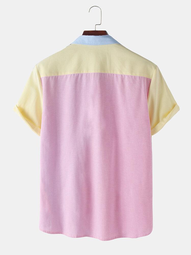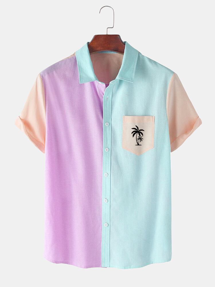 Men's Casual Patchwork Contrast Coconut Short Sleeve Shirt