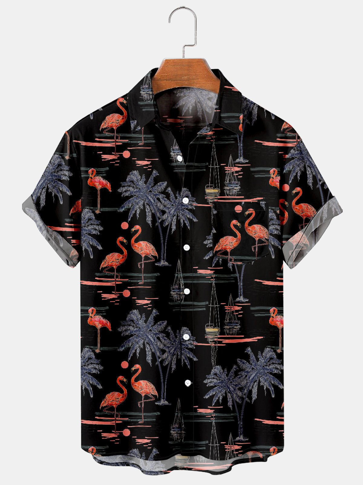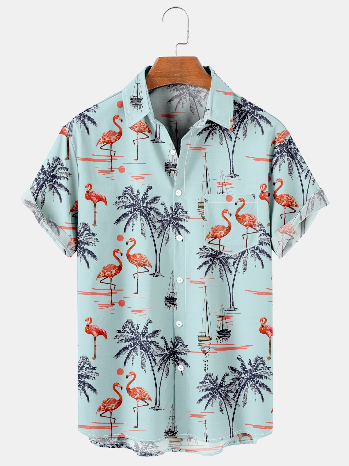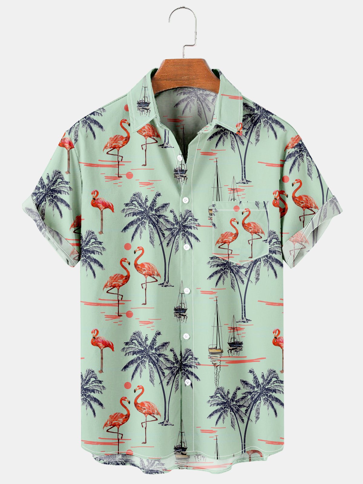 Men's Hawaiian Flamingo Coconut Casual Print Shirt
