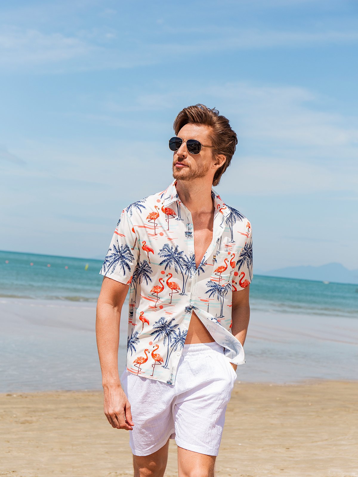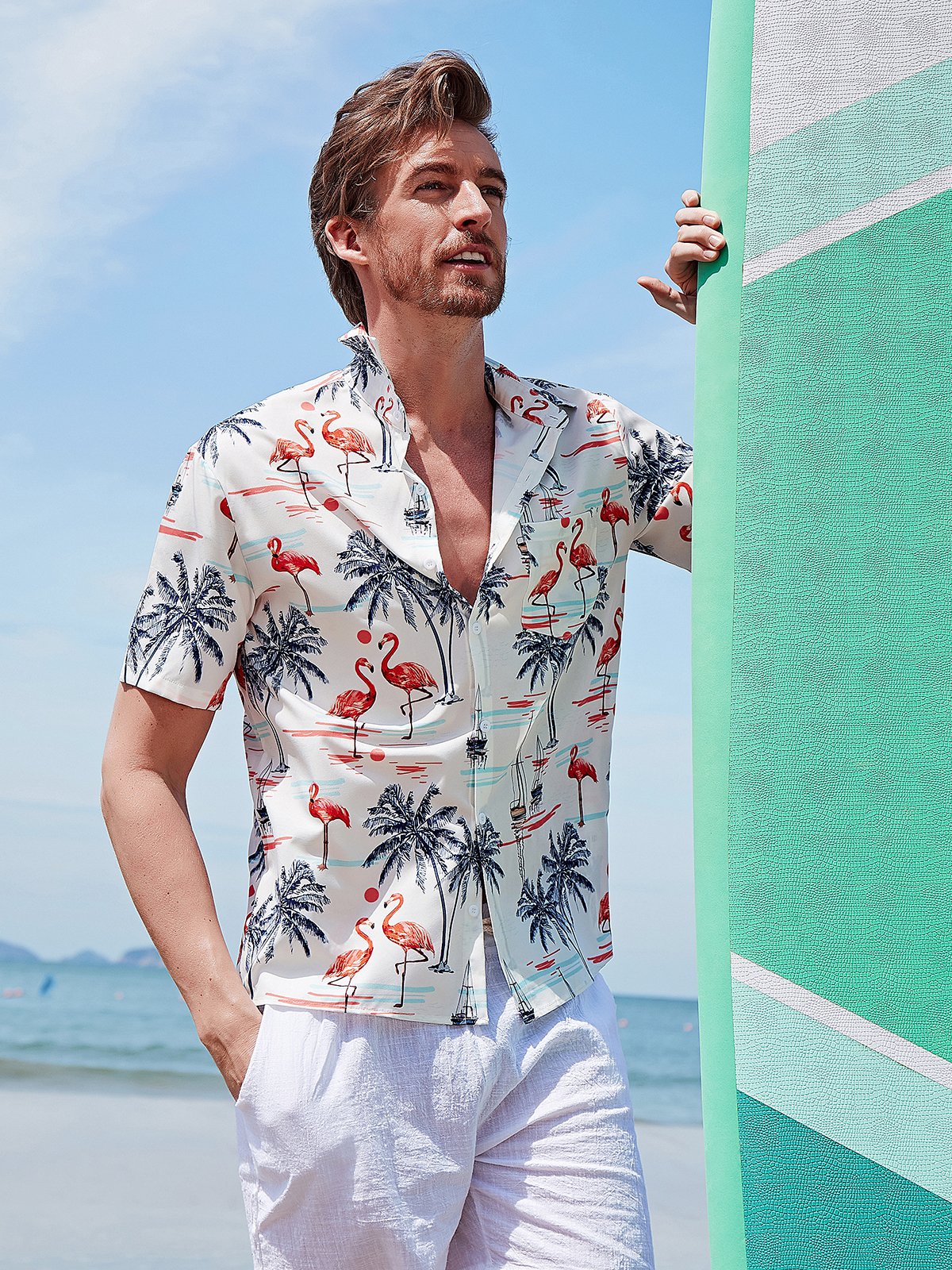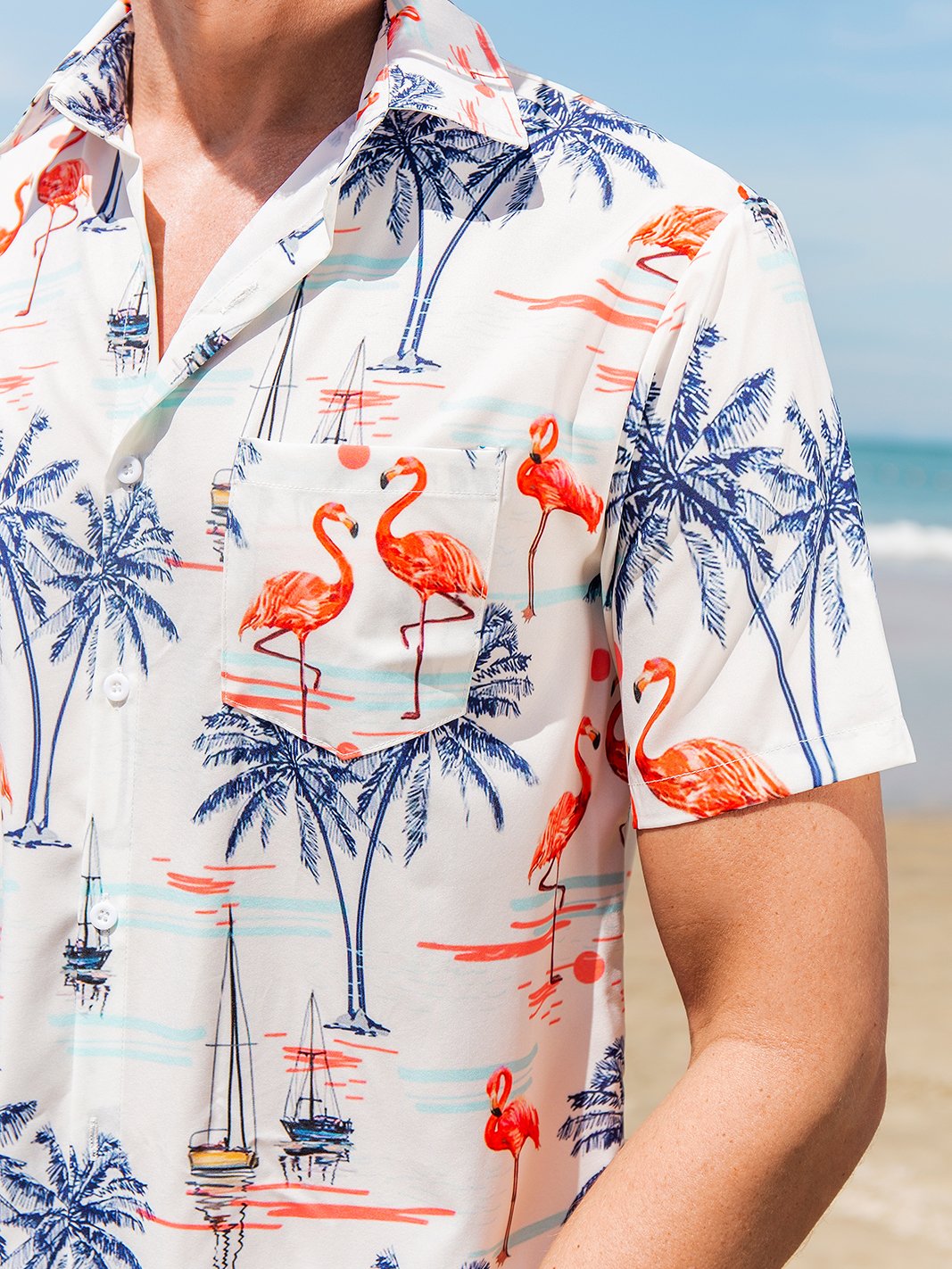 Men's Hawaiian Flamingo Coconut Casual Print Shirt